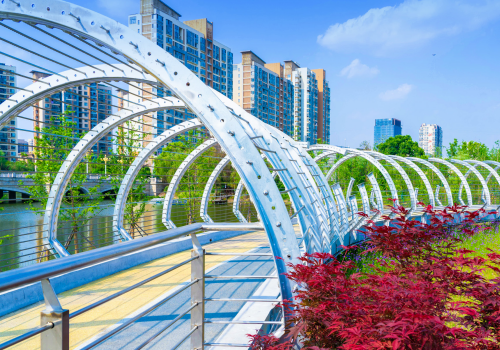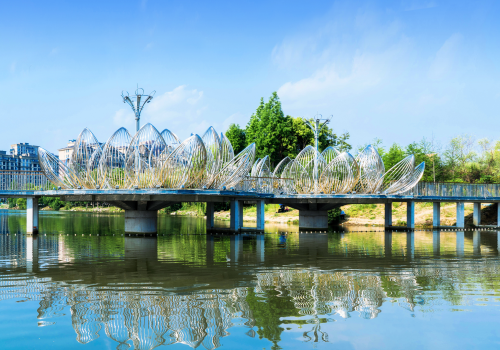 各位領導在講解員的指引下,一路走過華方一橋、華方二橋。他們在感嘆雙橋造型別致的同時,在橋頭處進行了簡單又不失莊重的剪彩儀式。