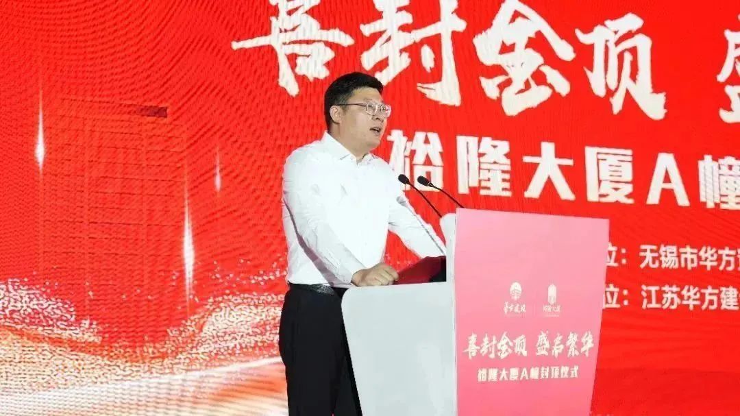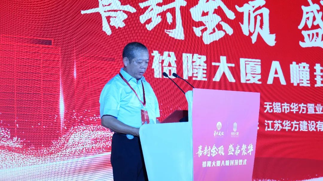 今天,裕隆大廈A幢項目的順利封頂,充分體現了華方集團響應區委區政府號召,希望華方集團上下能繼續保持共同建設的激情和韌勁,把二期項目建設成為東北塘街道乃至錫山區的樣板工程、品質工程。同時,也希望東北塘街道緊緊圍繞“項目建設突破年”的發展要求,服務好企業、項目建設等各類需求,探索走好樓宇經濟發展路徑,精心打造一批高端要素齊聚的特色樓宇,不斷推動服務業向現代化、品質化、高端化邁進,為全面推進中國式現代化錫山新實踐作出新的更大貢獻。
