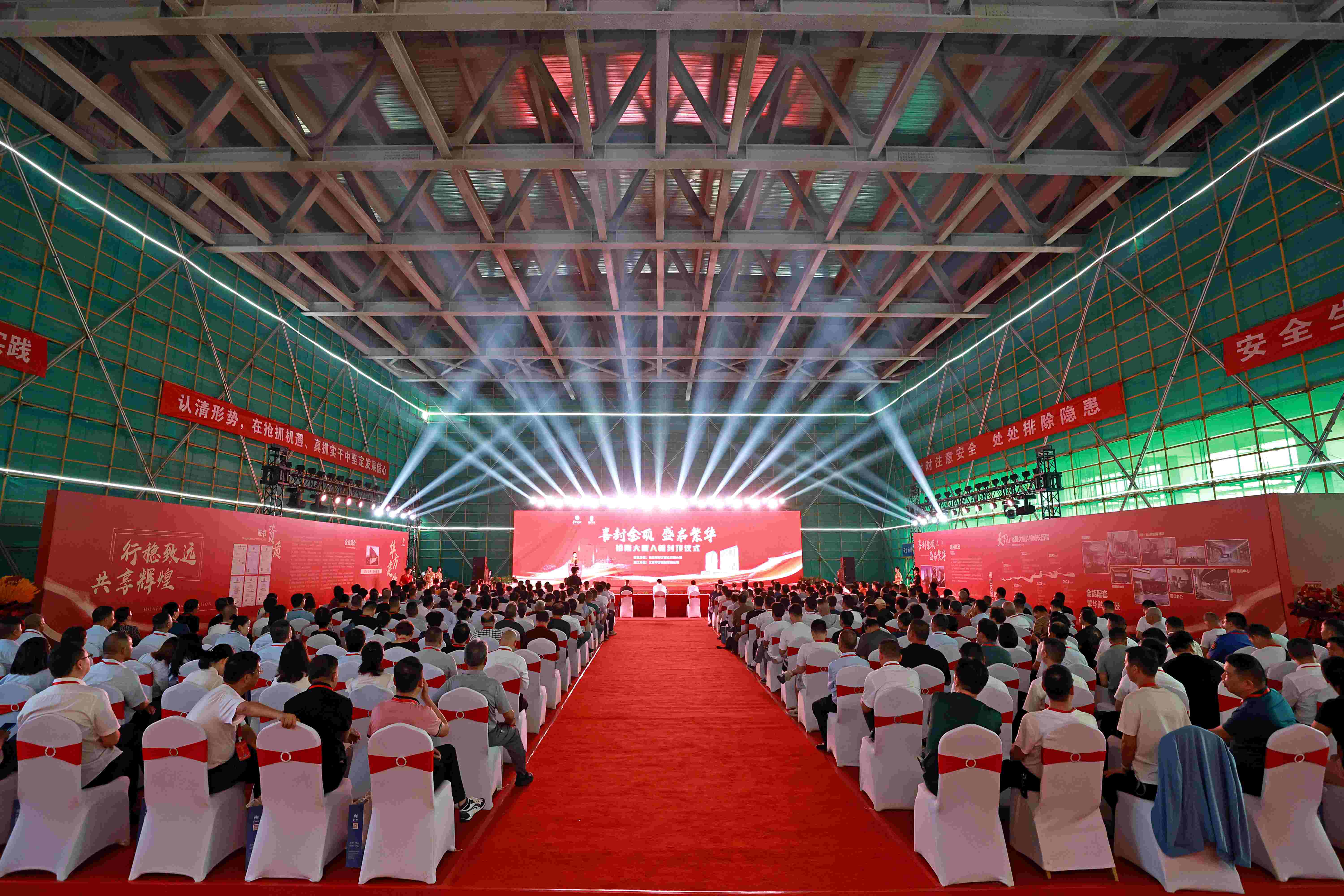 5、緊扣時間節點,抓牢關鍵環節。3月29日,裕隆大廈A幢舉行裙房鋼結構屋面吊裝儀式;9月8日,裕隆大廈A幢項目喜封金頂,項目建設取得突破性進展。