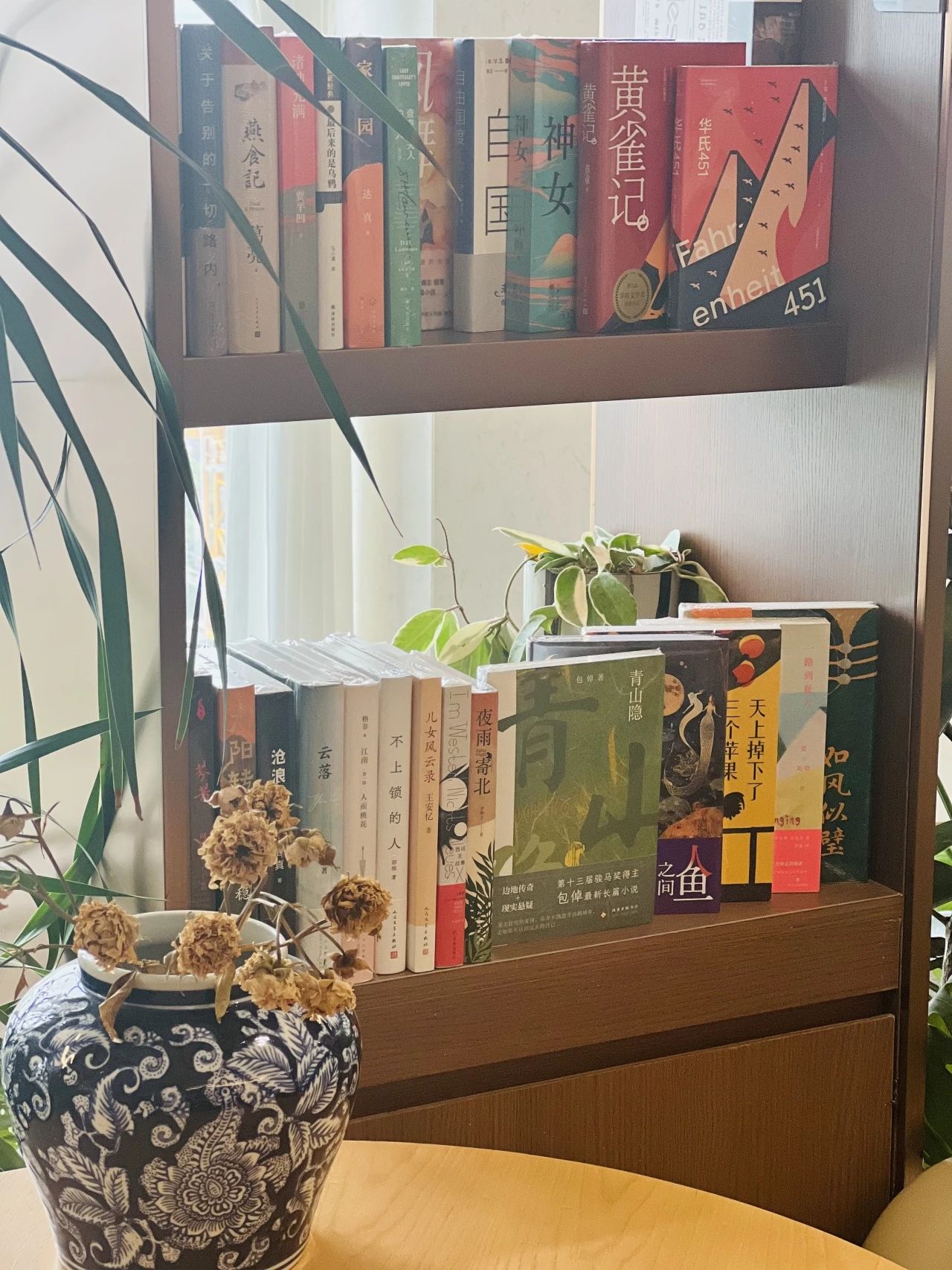 舒適的閱讀椅、小茶幾與點綴其間的綠植,散落在咖啡座旁、書架下、窗邊。